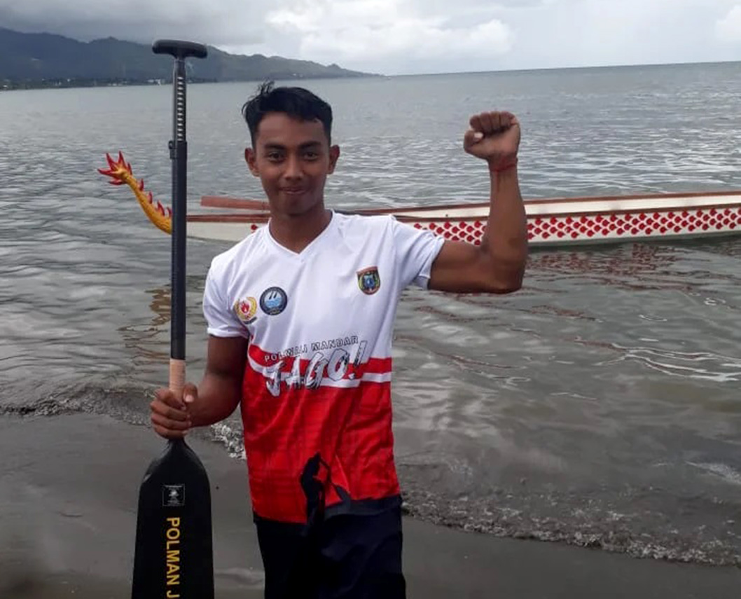 MAMUJU — Atlet dayung Polewali Mandar, AB Alif berhasil meraih medali emas di ajang Porprov IV Sulbar.