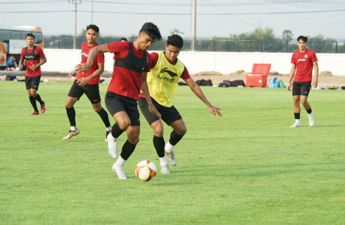 KAMBOJA – Tim U-22 Indonesia terus melakukan persiapan jelang menghadapi Myanmar pada Kamis (4/5) mendatang. Garuda Nusantara terus dimatangkan oleh pelatih Indra Sjafri dalam sesi latihan, Selasa (2/5) di Phnom Penh, Kamboja.