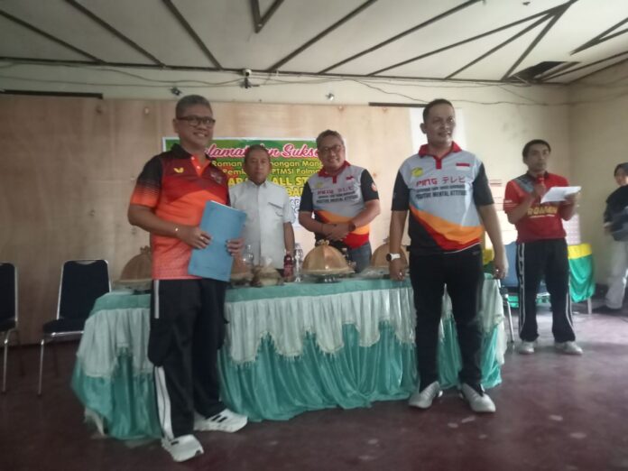 POLMAN – Ketua Komite Olahraga Nasional Indonesia( KONI ) Provinsi Sulbar Andi Ali Baal Masdar membuka kejuaraan tenis tenis meja ganda putra all star Ping TV Roman Sulbar di Gedung Catatan Sipil, Polewali, Selasa kemarin, 26 Desember 2023.