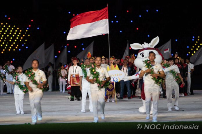 Kontingen Indonesia pada ajang SEA Games 2023 Kamboja mengusung target maksimal. Presiden Jokowi menginginkan tim Merah Putih mendapatkan 69 medali emas dan menembus posisi runner-up. (jef/kemenpora)