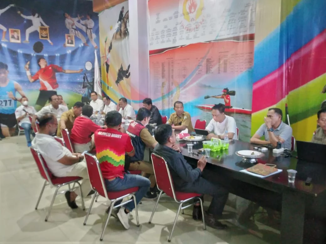 KONI Sulbar saat menggelar rapat persiapan pelaksanaan PON XXI Aceh-Sumut di kantor Koni Sulbar beberapa waktu lalu.